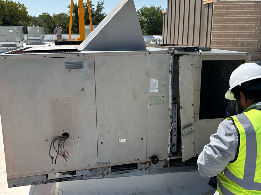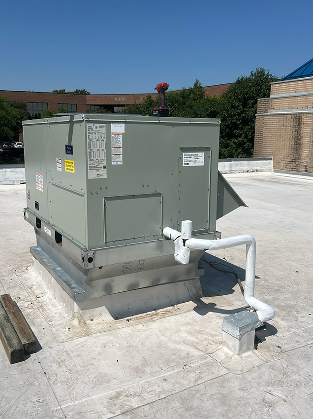 Throughout the Austin metro area, we’ve served the Public Employees Credit Union for more than 10 years. With various locations, the credit union has a regular need for our expert commercial HVAC services. The most recent project for this long-standing client was completed in the summer of 2025 for the company’s Walnut Creek location. The outdated rooftop equipment was in need of an overhaul. Once the situation was assessed, our team went to work replacing seven RTUs. Using a Sky Trak and roller lifts, the technicians on site were able to complete the job safely, without the use of a crane.